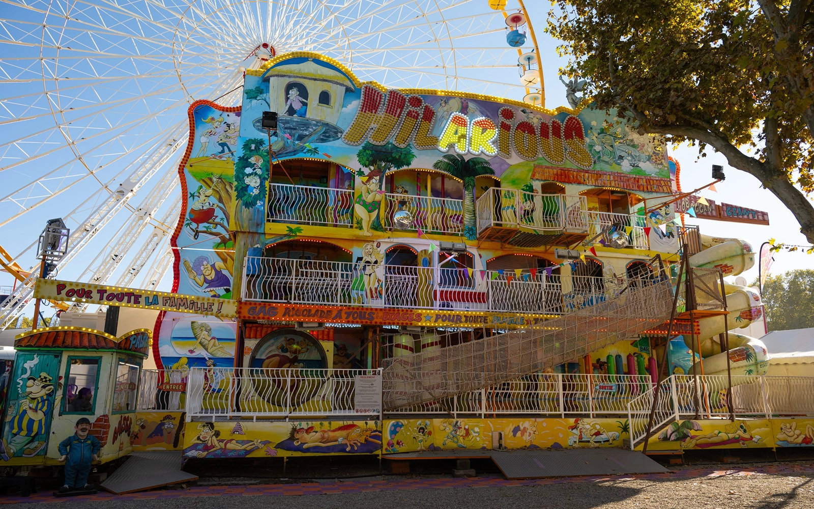 Familles 5 ans Éclatant ONE MAN SHOW, c’est une superbe boîte à rire emblématique de la Foire aux Plaisirs. Magnifique déco et lumières somptueuses à la nuit tombée ! Un parcours très accessible et des